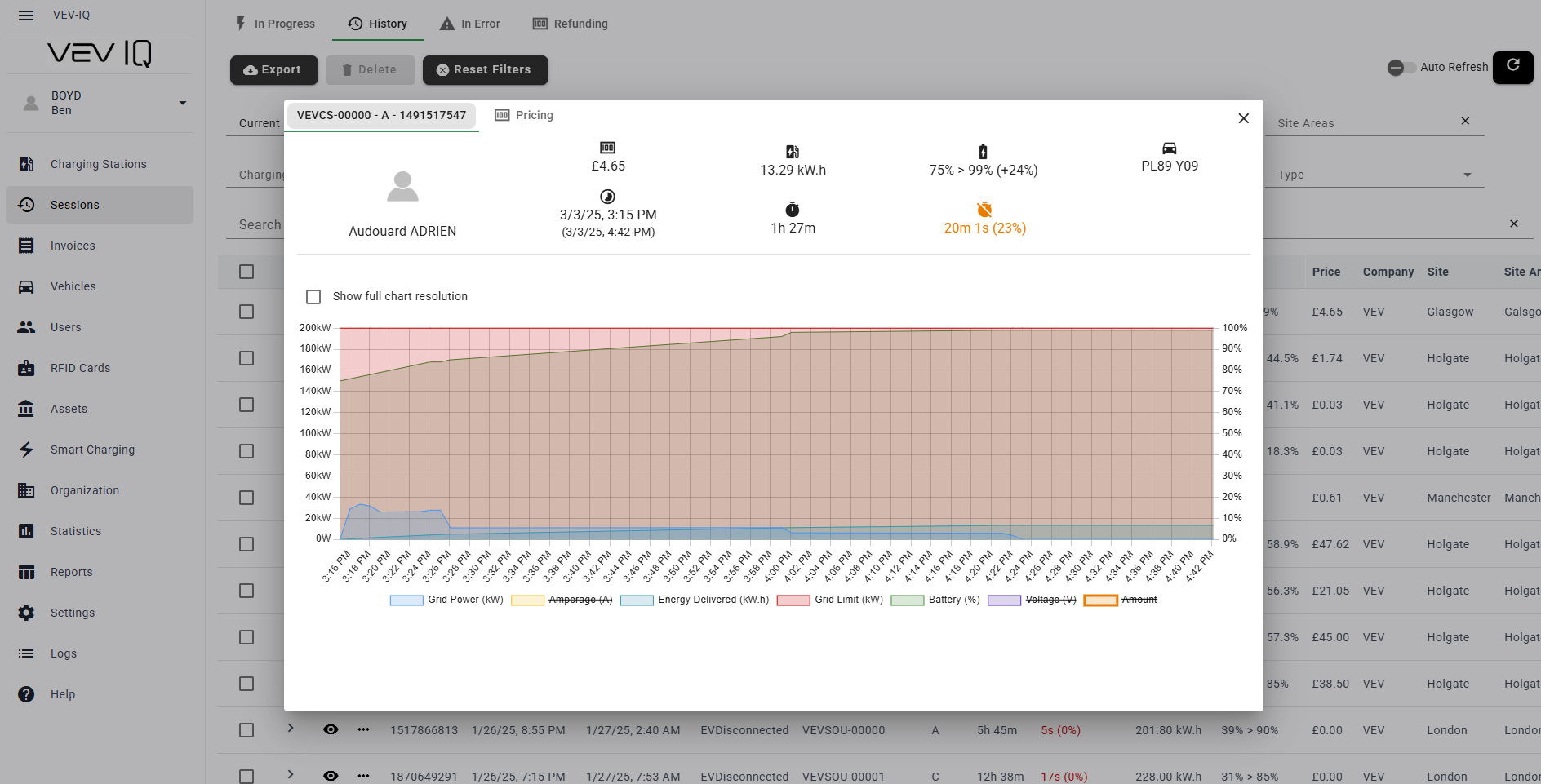 - The pop up will include all information to do with your historical charging session: