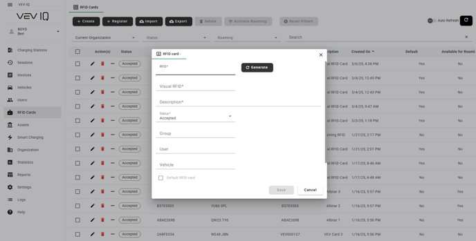 - When users register on the platform, they will automatically be assigned a 'Virtual RFID' which allows them to use the VEV-IQ Driver App or Web Portal