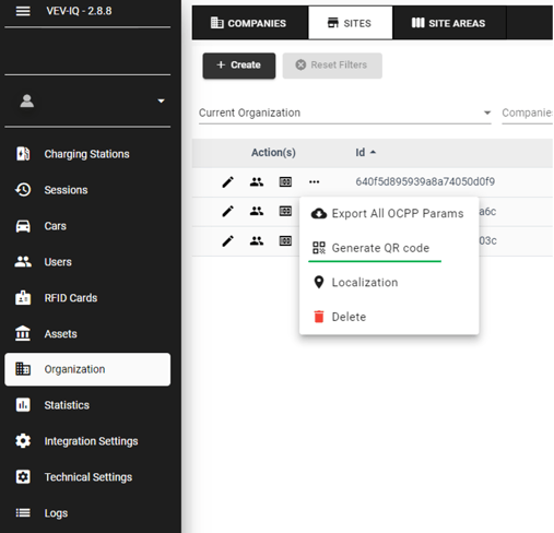 You can generate these QR codes either individually per charger, or for all chargers within a site area at one time.