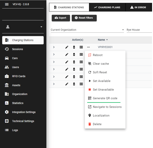 - Identify any charging station in your company and select the 3 dots next to it