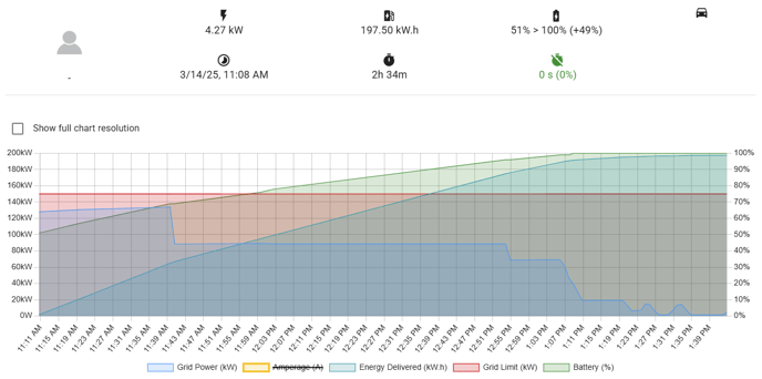 The power being delivered to the vehicle. If this is low or 0, there may be an issue with the charging process.